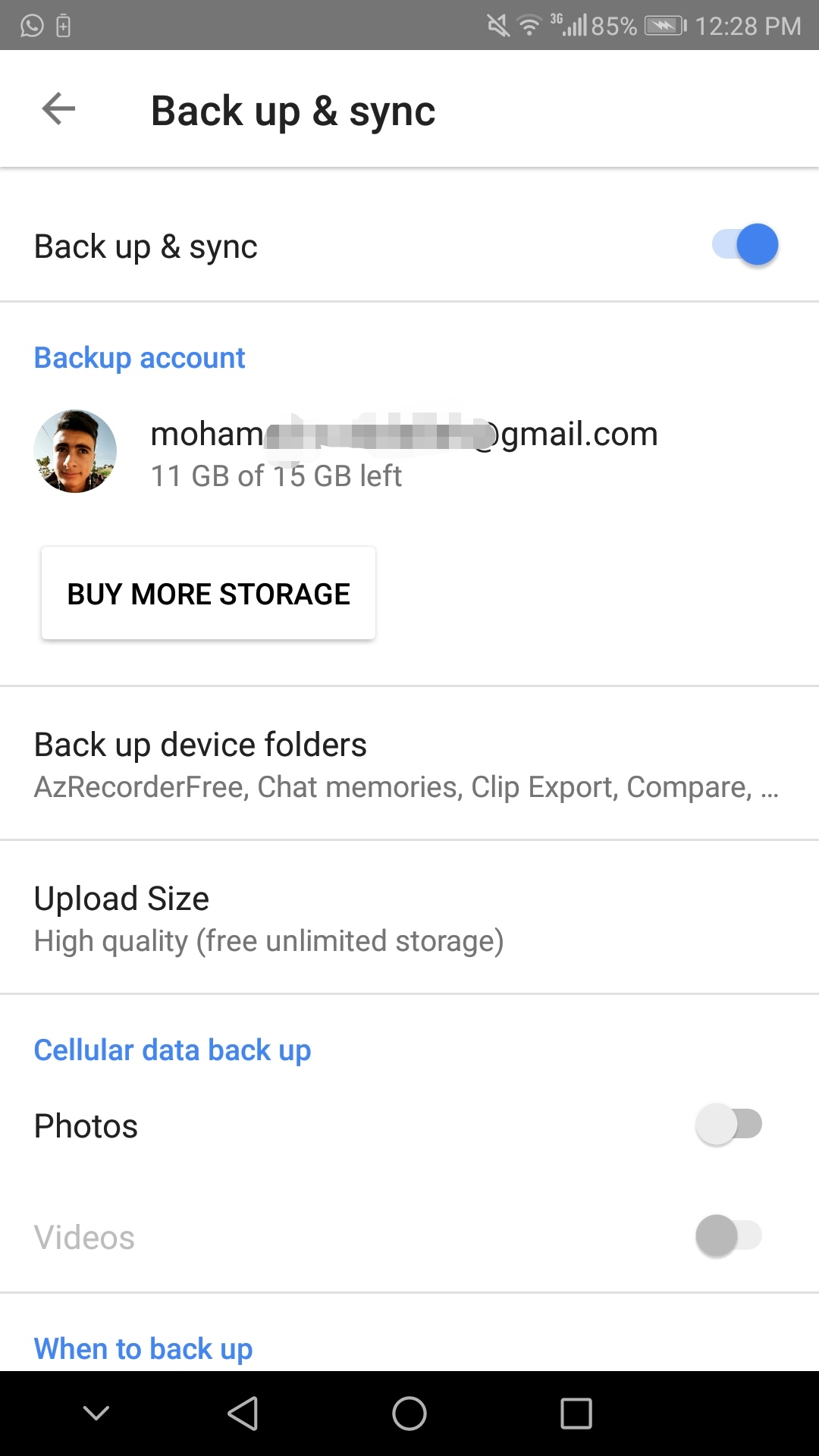 Back up and sync is a storage service that automatically saves your photos and videos to your Google Account. These photos and videos will be accessible from any device where you are logged into your account.