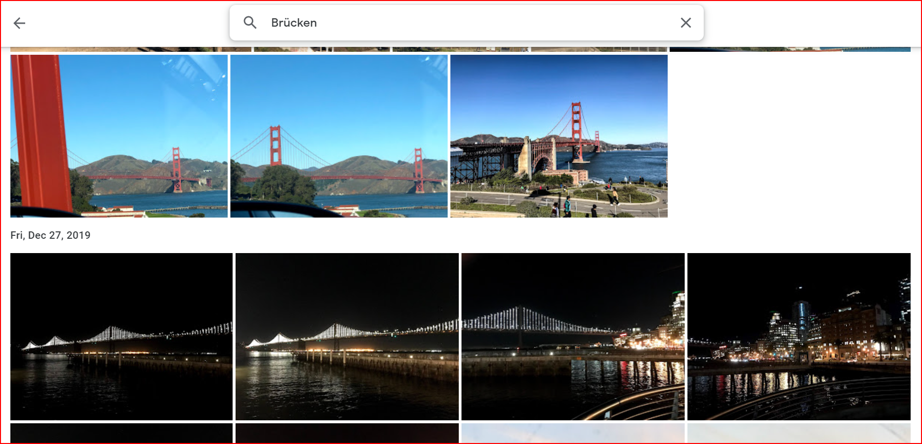 thanks for the answer. The problem is that you're searching the content of the photos, which Google identifies with AI. What I want to do is search albums and photo captions with those keywords, meaning when I name an album "Brücken (bridges)" without any actual bridge photos in it, the search function cannot find it, which should have been the easiest thing to implement.