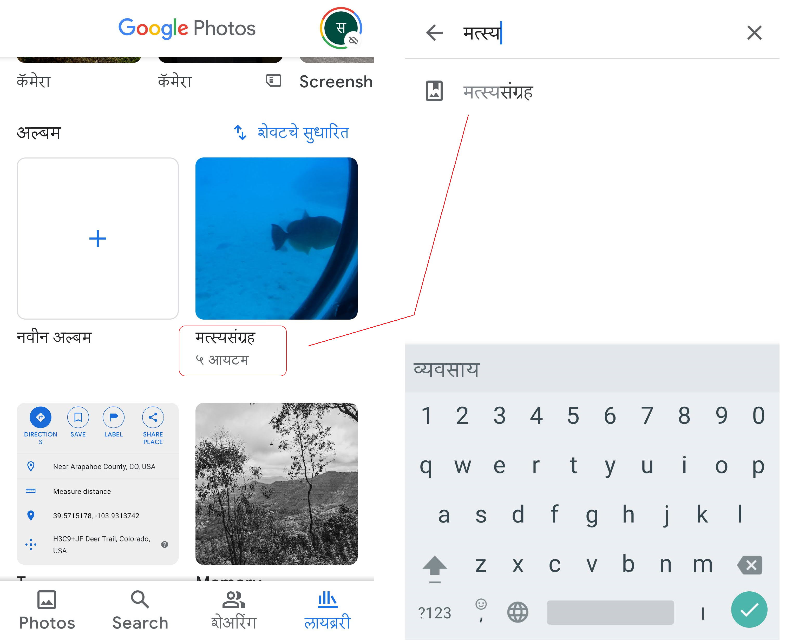 First, I set the device language to Marathi & created an album with the name मत्स्यसंग्रह.