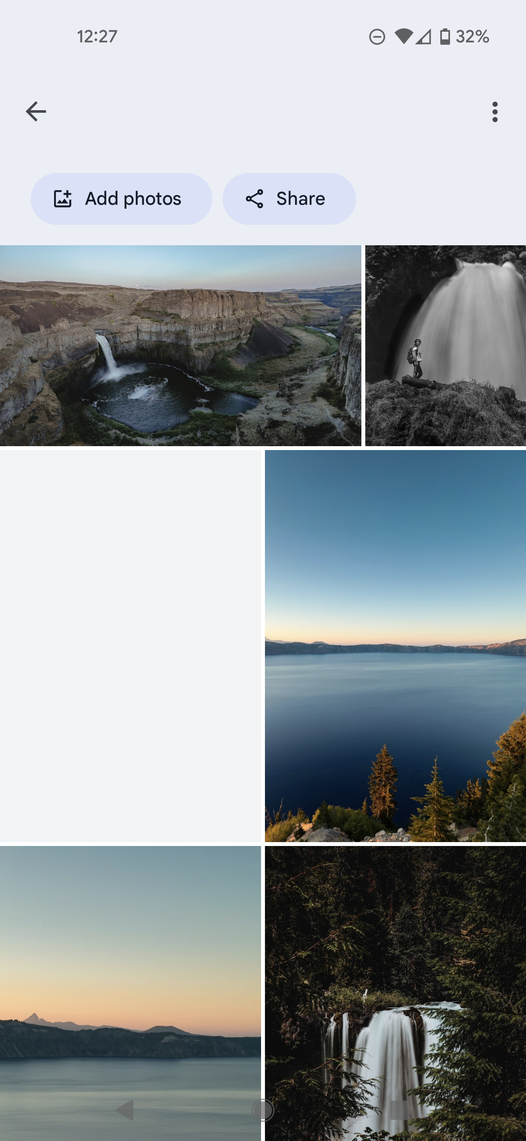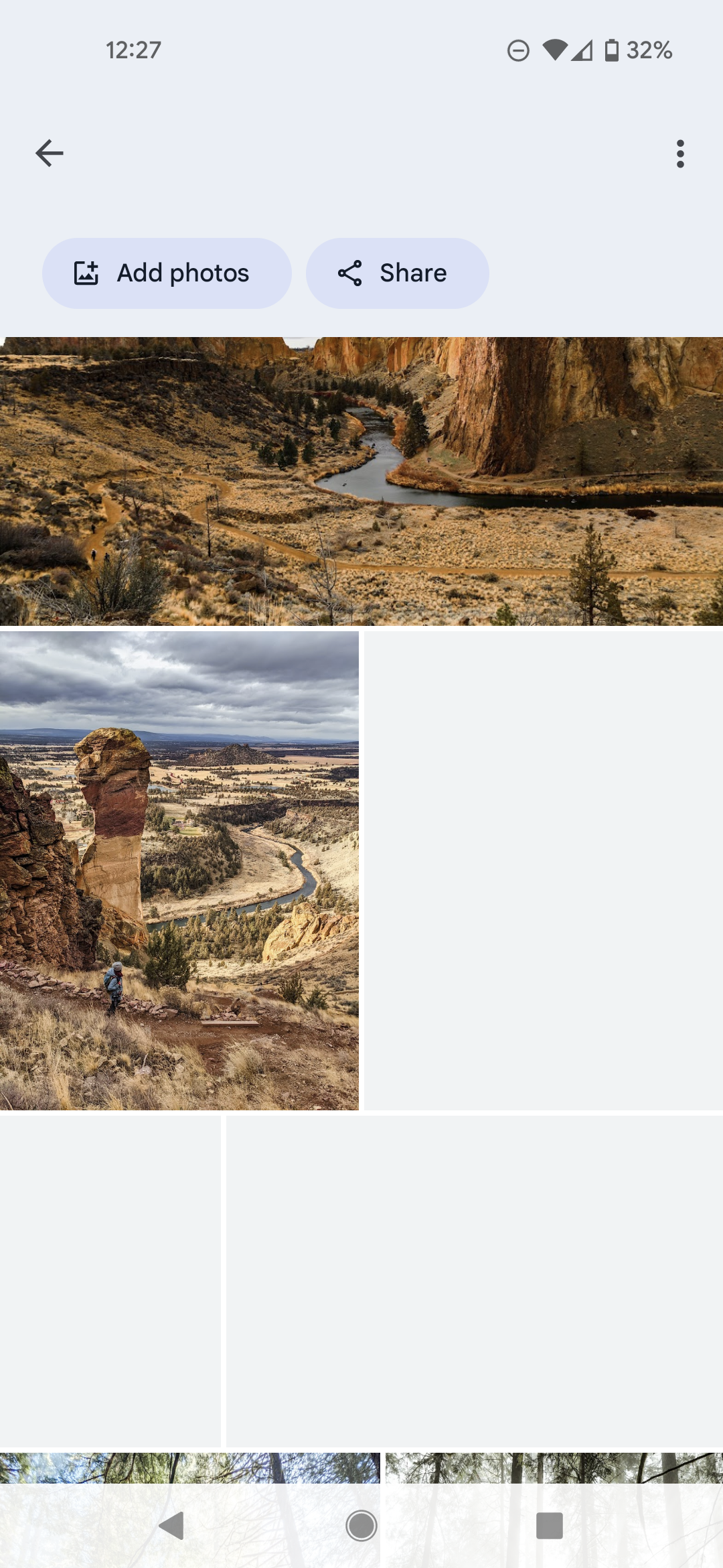 I tried different wifi and open from the web page instead of the app, the missing photos do no show up. When I open from web page, there's no grey grid, but the photos just do not show up at all. But I know which photos are missing, and I think this happened after I free space from my phone.