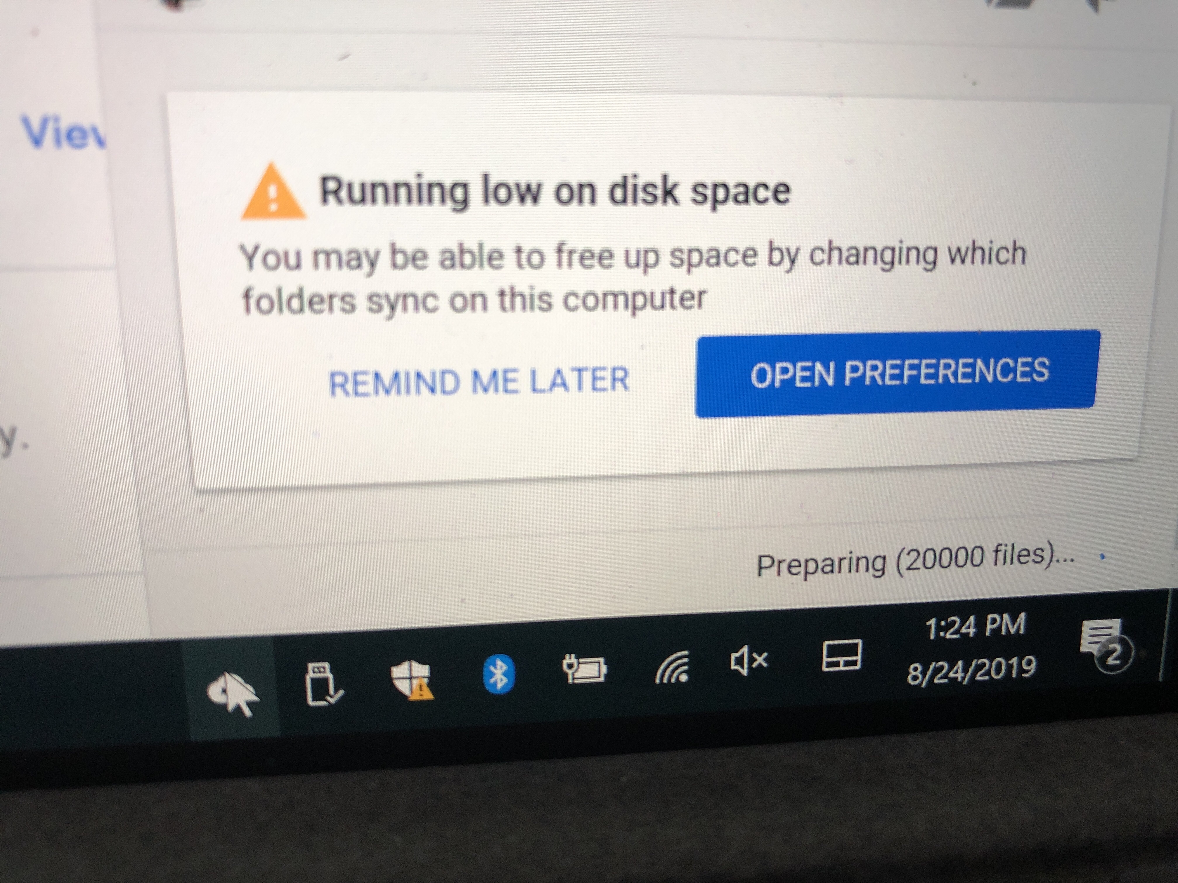 No problem, I should have asked in a better way. The warning is telling you that Backup and Sync can't sync any files in the Google Drive section because your computer does not have enough storage available.