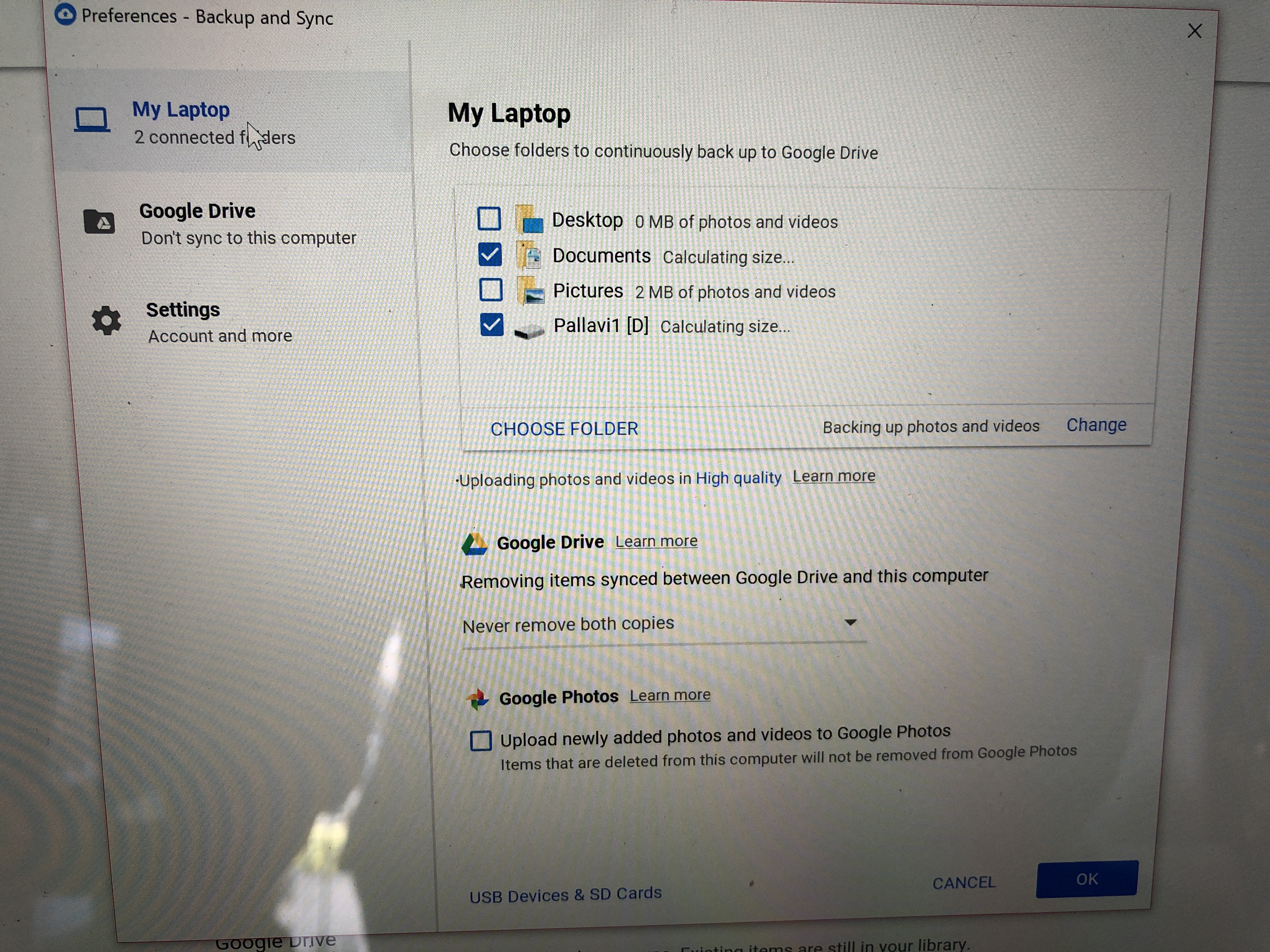 I suggest you disconnect Documents and Pallavi1 from preferences and then delete My Laptop from https://drive.google.com/drive/computers and empty the trash.