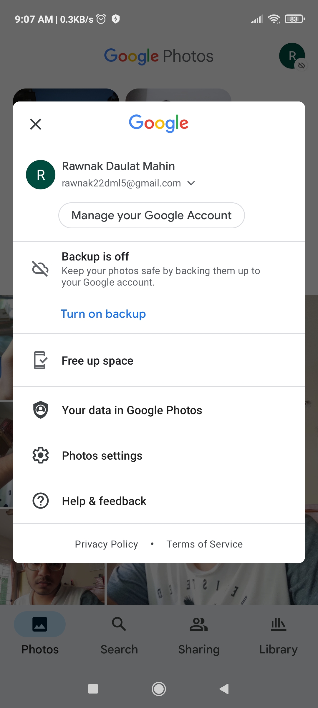 to turn on google photos backup.