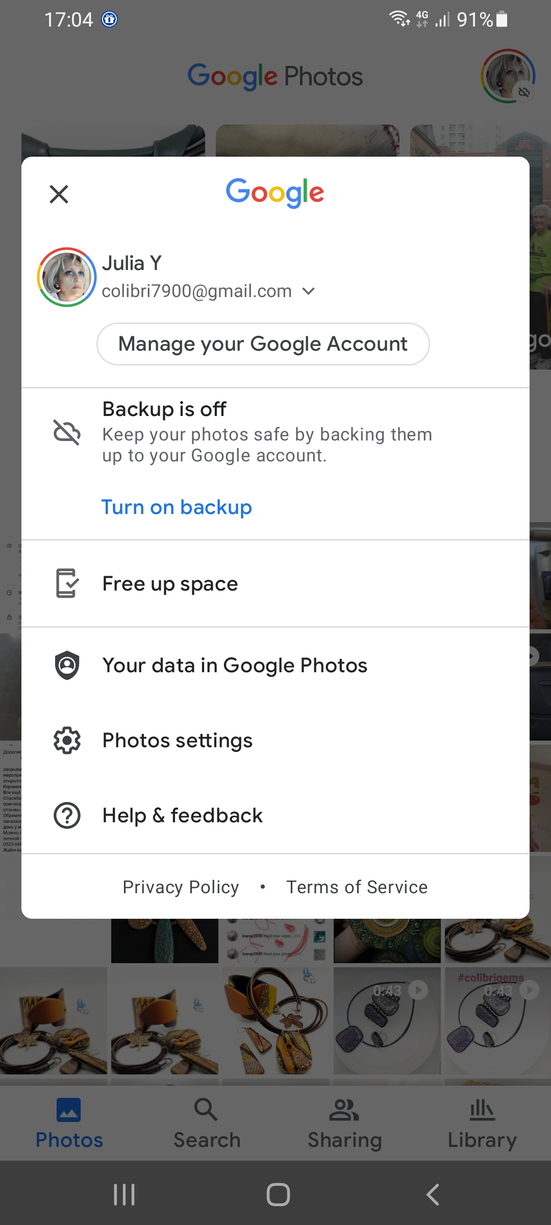 Turning off synching from my android to google photos doesn't work. I see my avatar picture with the…