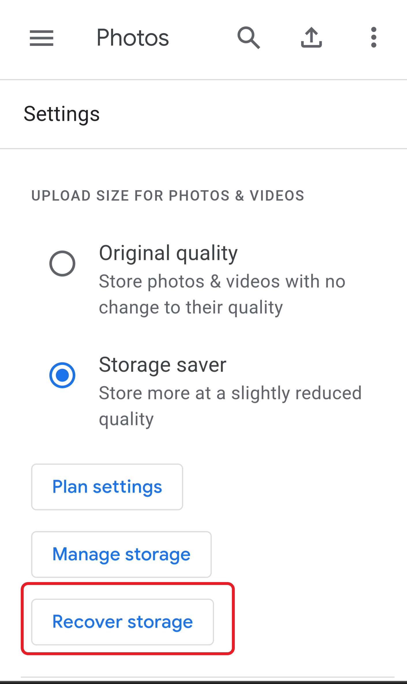 There you will find an option to recover storage. Tap on that.
