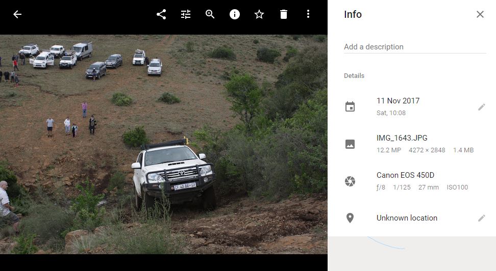 As you can see, there is no description on the photos. The Photo name and date time is identical.