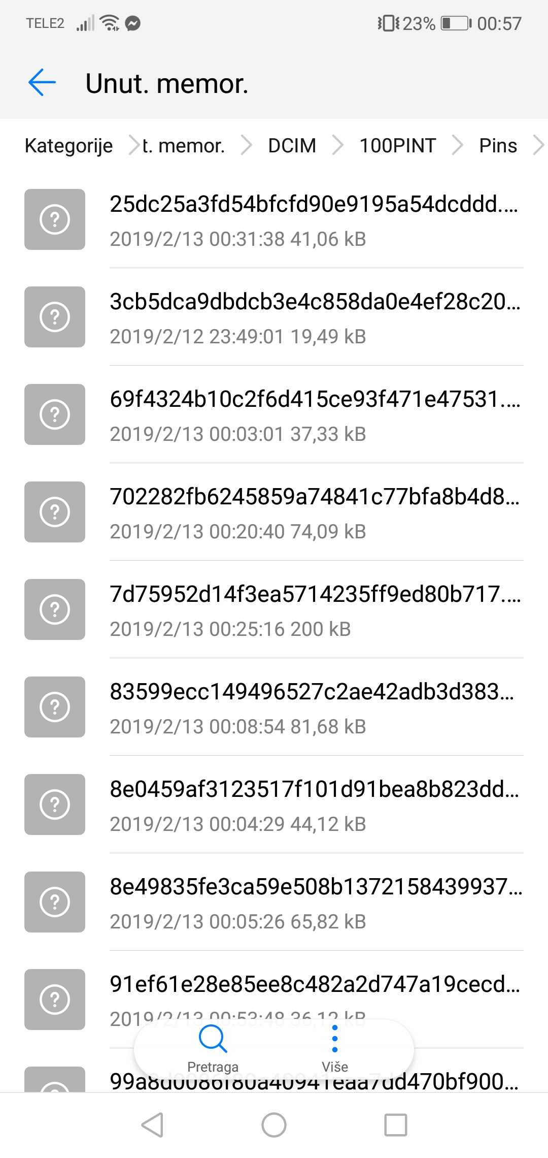 I was able to fix the problem! Not sure why this is happening, but you can try this method: Go to Internal Storage > DCIM > PINT100 > Pins. You'll see the list of images that you have downloaded but cannot open. Try to rename the file. Remove the "?b=t" at the end of the file name. Leave the .jpg. as is and save the file. You should be able to see the image right after.