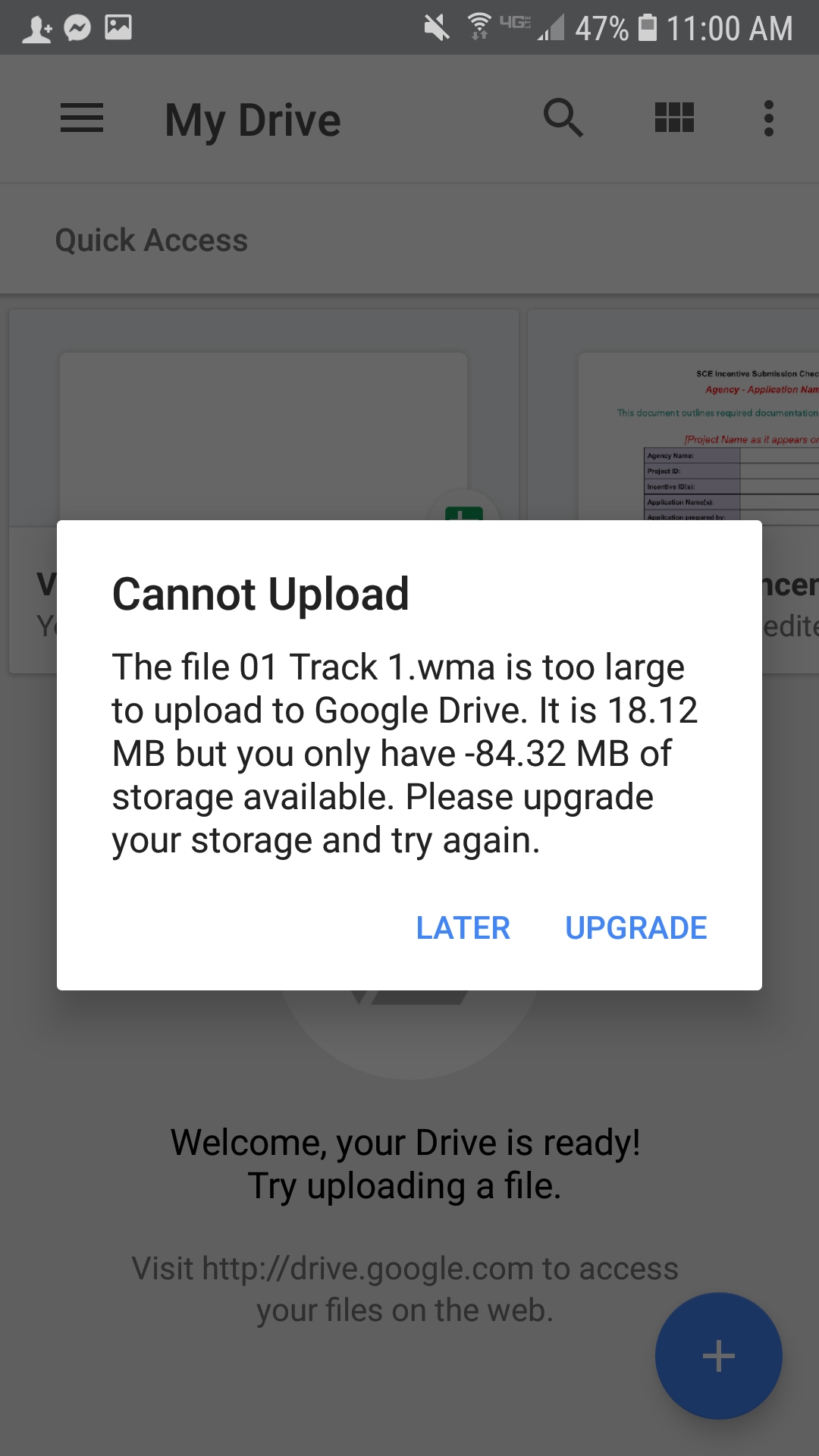 Question: I converted photos to high quality. It shows space but when i try to upload to drive it says full