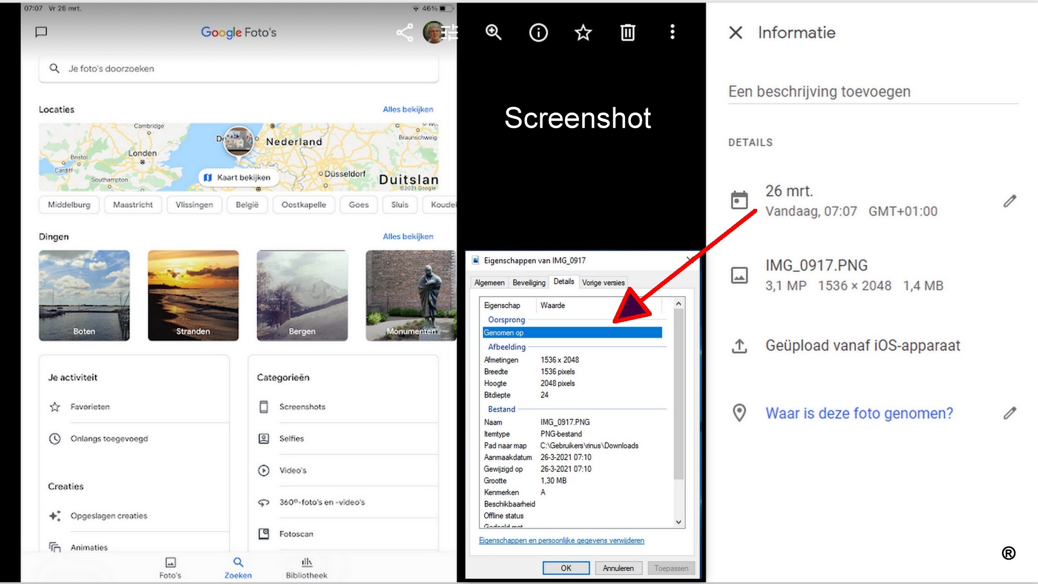 Below a normal camerashot from my iPad is shown on photos.google.com with its infopanel opened at right:
