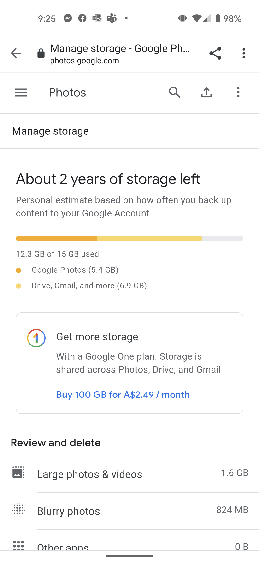The second shows 3.9GB used of the free 15GB....Yet only 6 pixs have been uploaded from 1st June 2021.