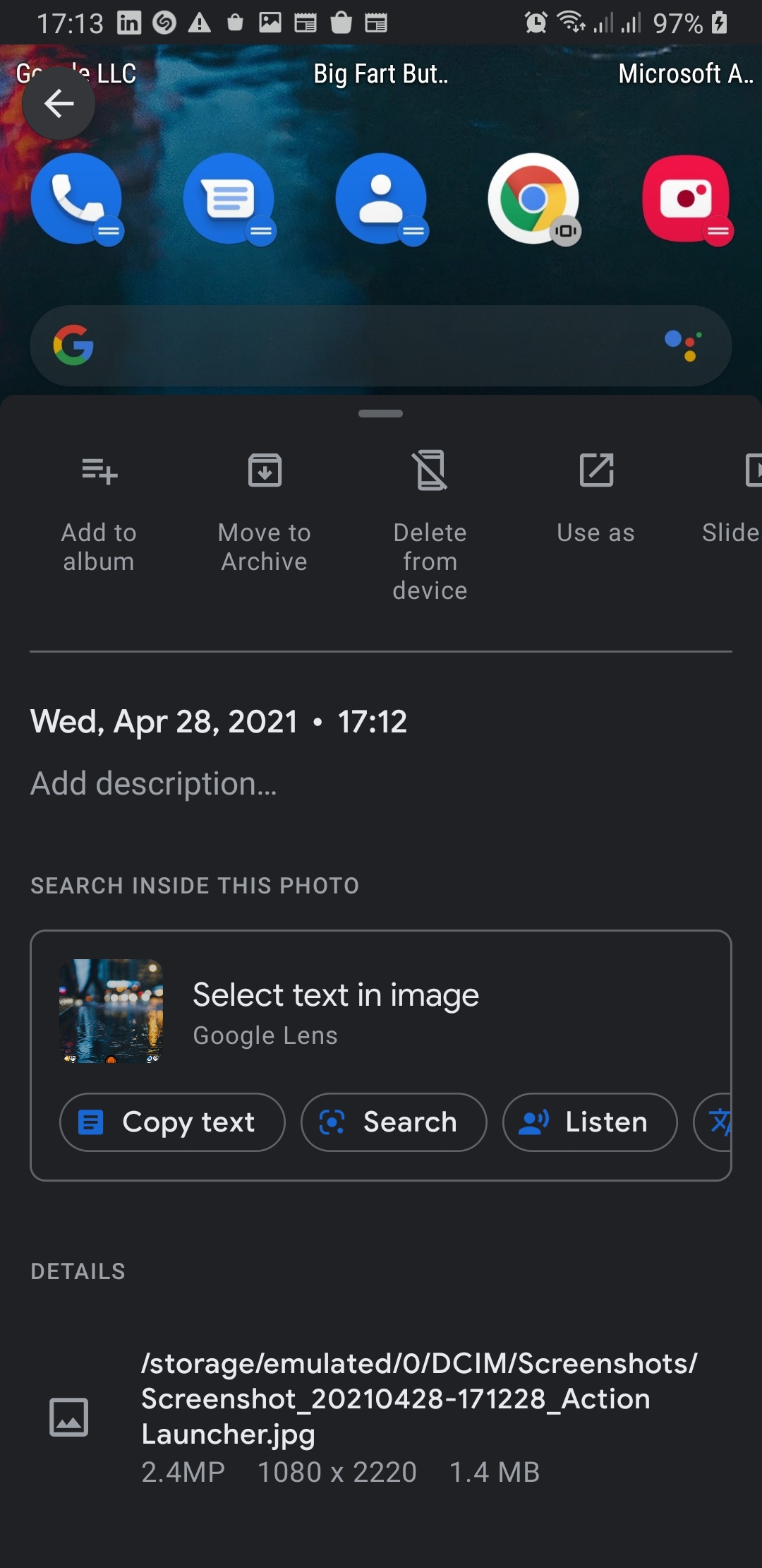 I have a Pixel 4a. After I take a photo with the Camera app and select to share the photo, I get two…