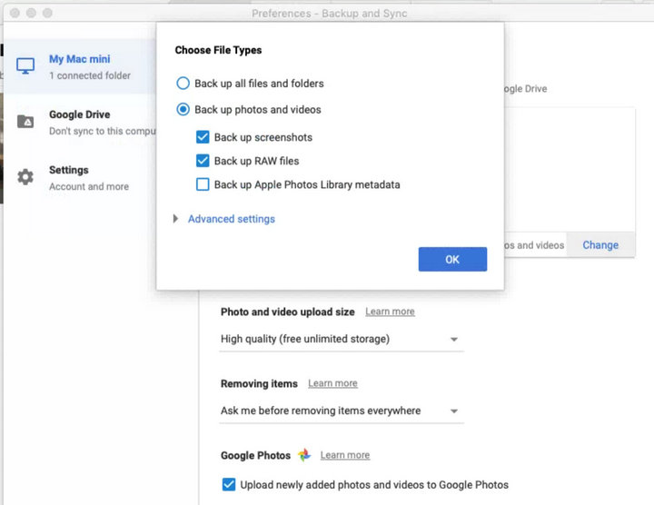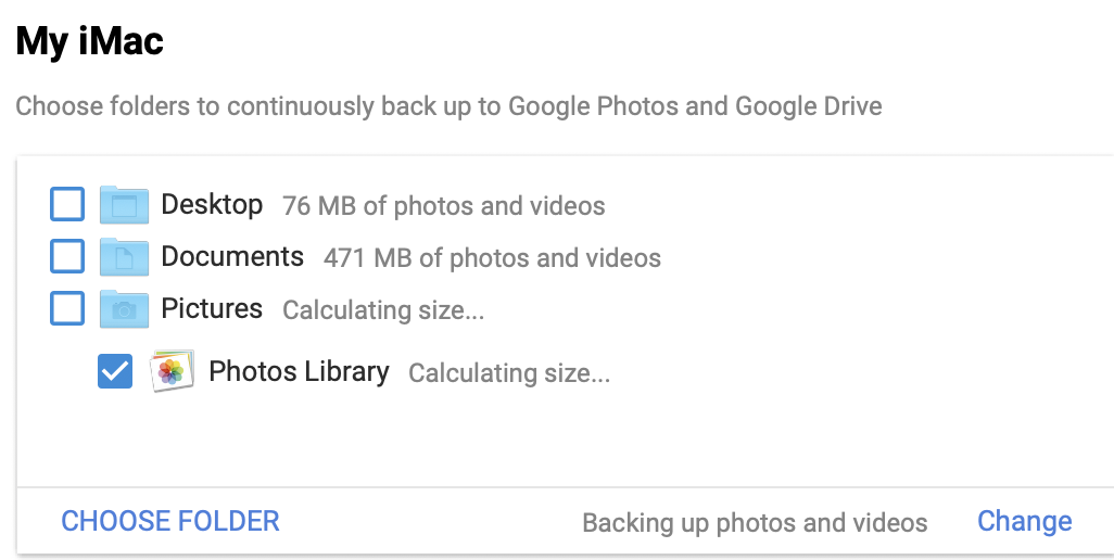 Thanks, I can see them now. What options do you have in Preferences when you select 'Change' to the right of the Choose option next to Backing up photos and videos. One of the issues with the Apple photo library is that it contains thousands of supplementary files (metadata), face tiles etc. which are scanned in the count, but not necessarily uploaded to Google Photos.