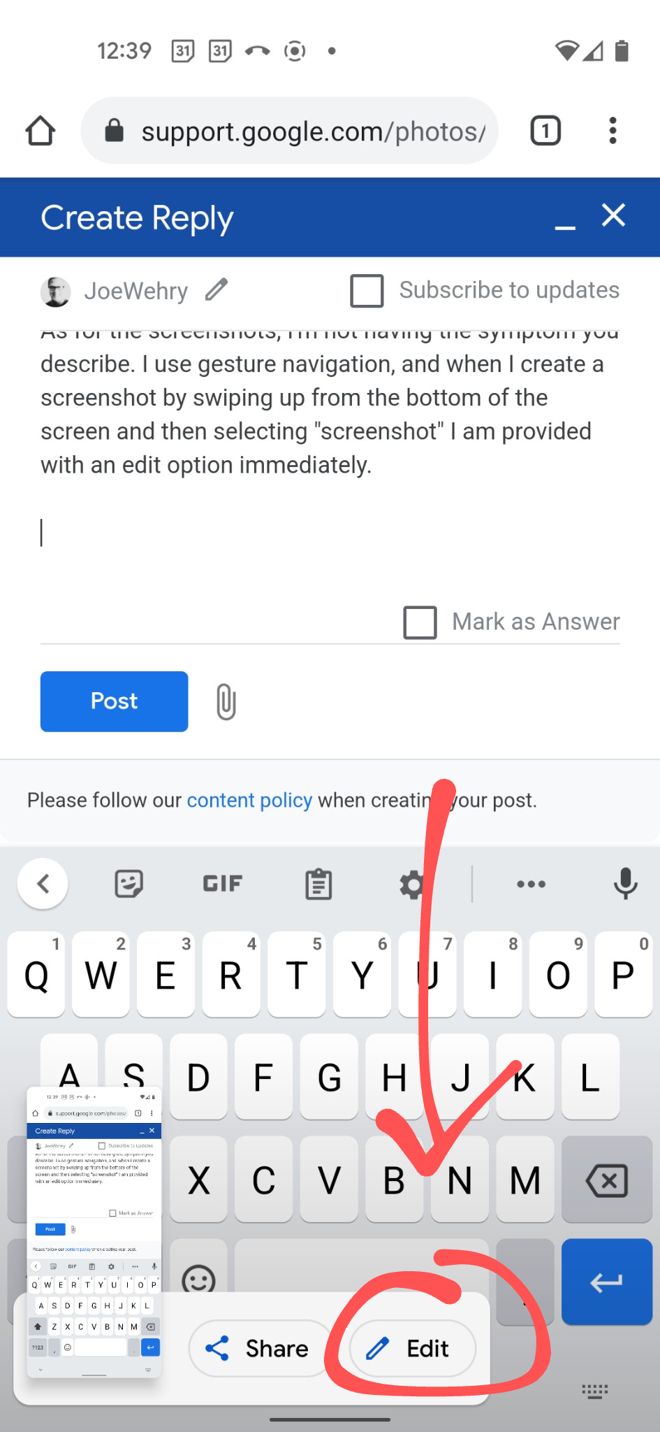 My phone got an update, and I really hate it. When I try to take screen shots or take any photos it used to let me automatically edit it, just as if it was easier. But now things have changed and sadly I can no longer automatically edit them. The unedited photo wastes my storage in my gallery because I have to constantly delete the original. Is this fixable? Because I really need help on this, I don't wanna have to agonizingly open Google photos and keep deleting the original every single time I take a photo.