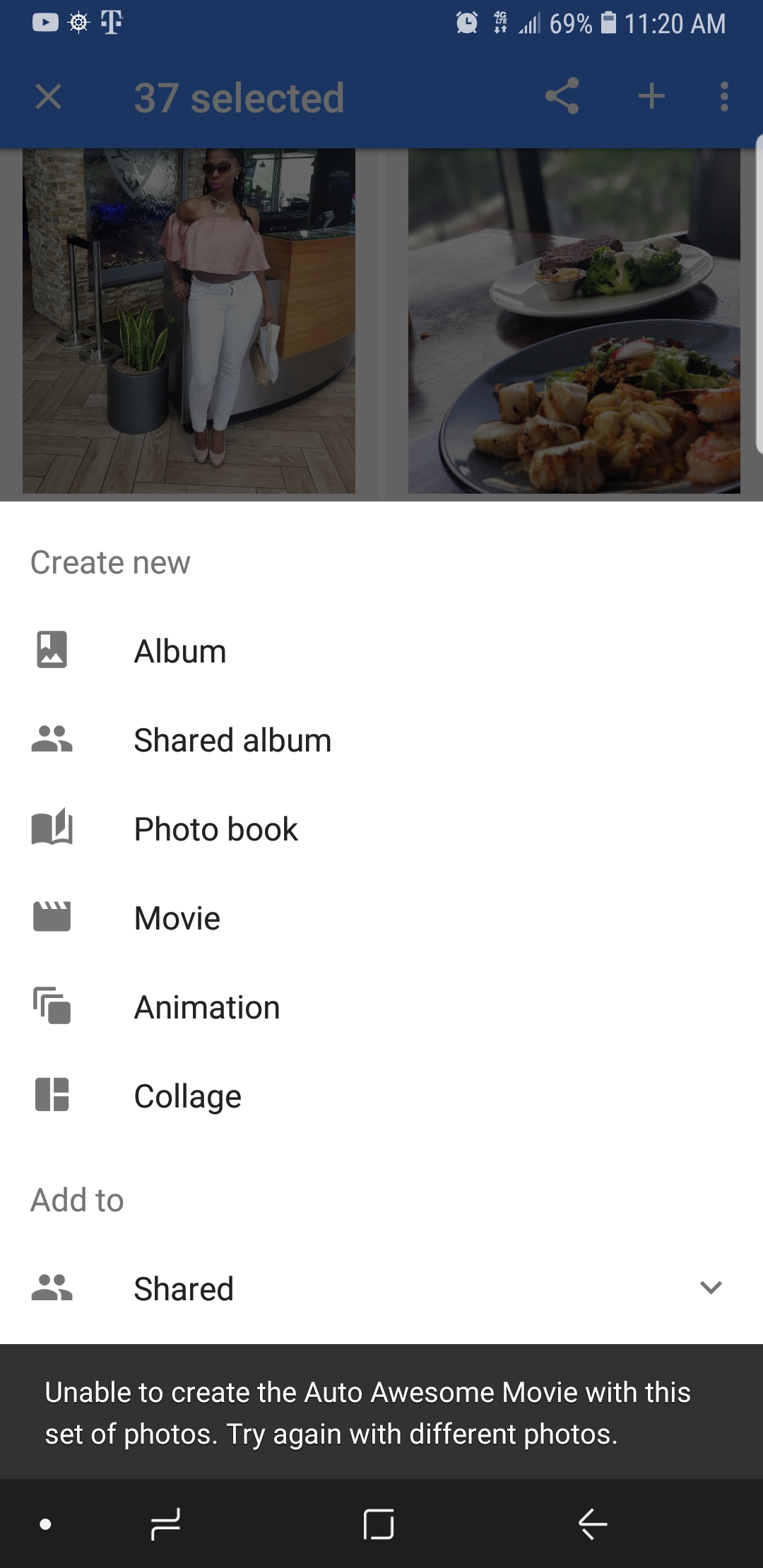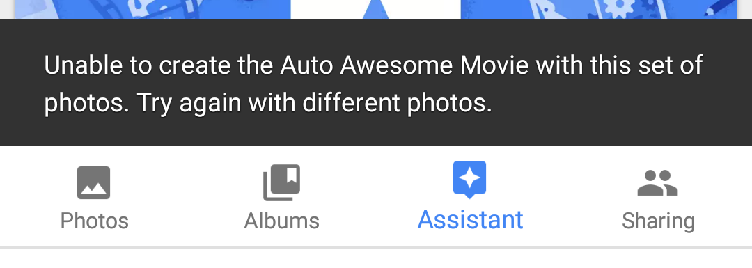 Question: Why do I get this message: "Unable to create Auto Awesome Movie with this set of photos. Try again with different photos"?