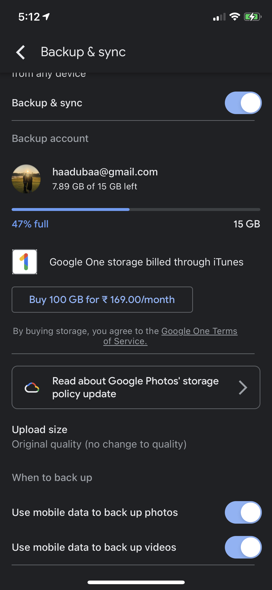 PS: be aware that allowing videos to backup can take GB's of mobile data nowadays due to 4K.