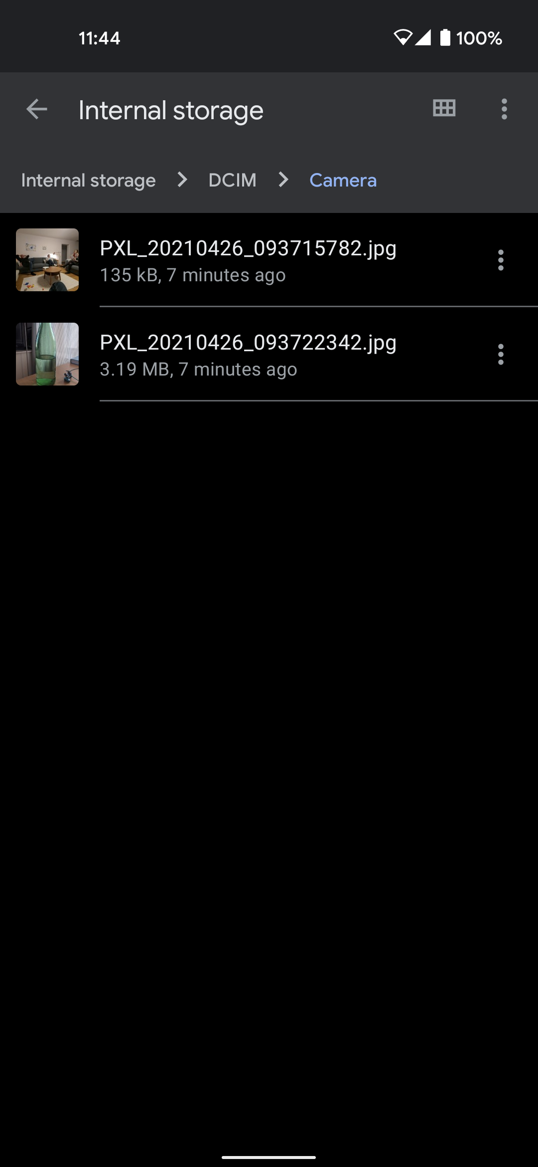 - new pictures taken sit in DCIM/Camera (see screenshot)