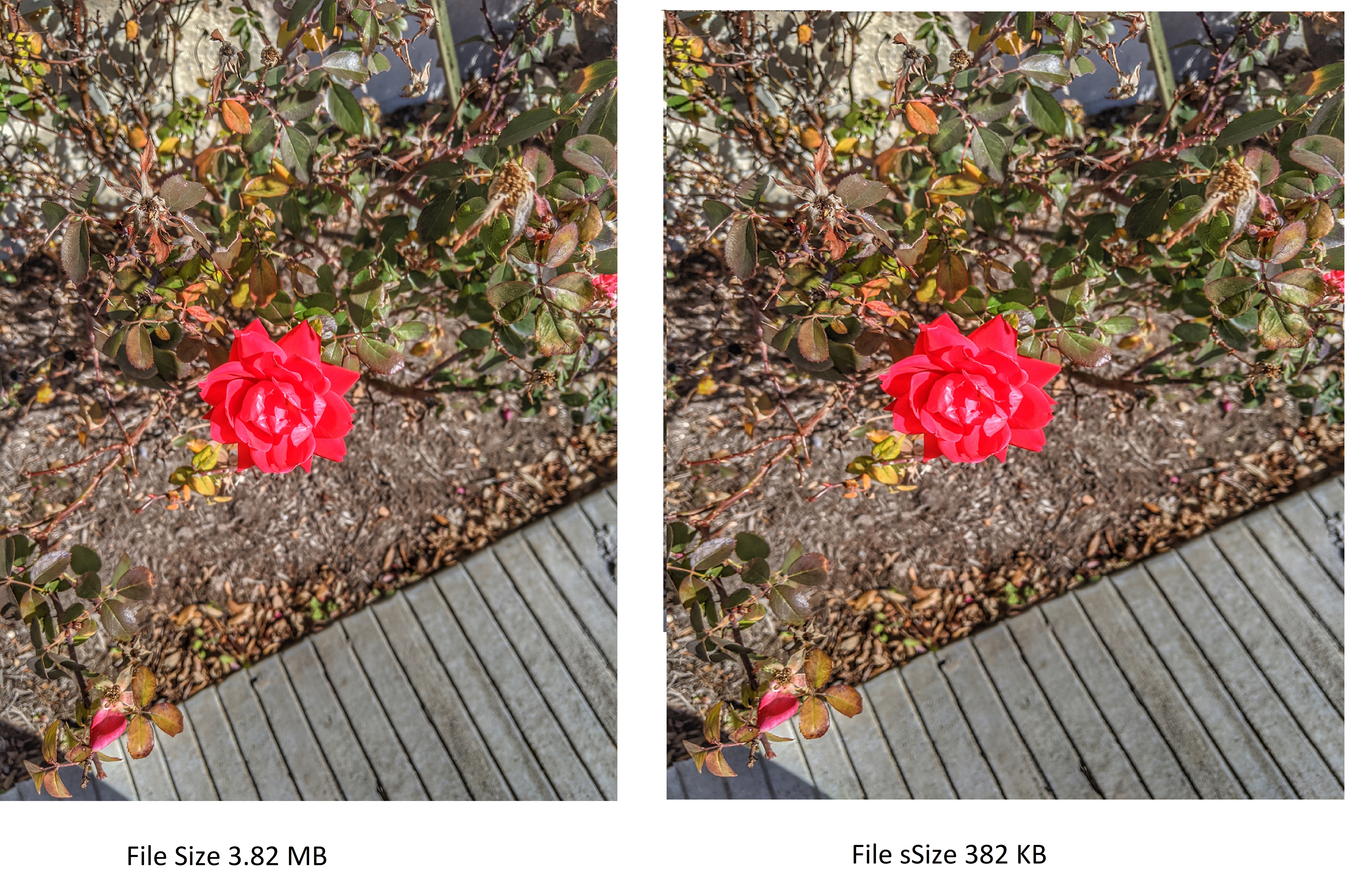 Here is an example of the same photo in High quality & substantially reduced quality.
