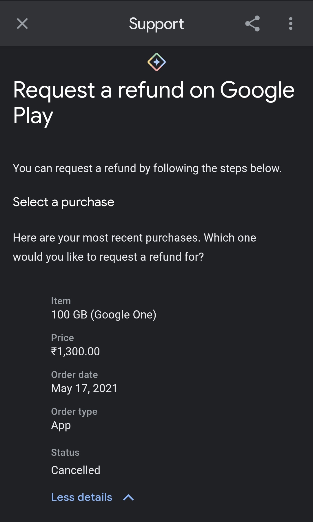 Actually it is not showing anywhere in my payment or purchase history but it is showing cancelled in my google play refund amount option. I am sharing the screenshot below.