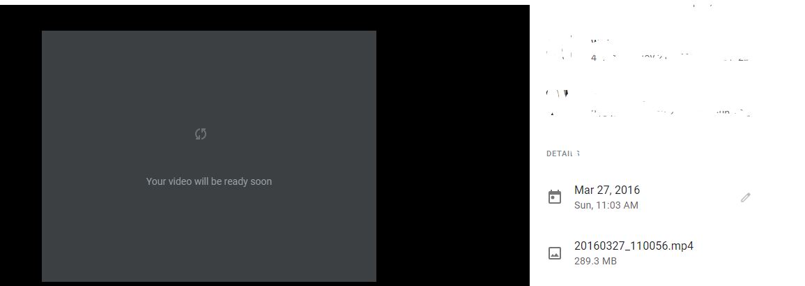 I have videos that used to play, but now say "Your video will be ready soon". They have said this for 6 months or so. I have gone through all of the steps. I cannot find the files in my Drive. I cannot download the files. The files do not show up when doing a Google Takeout. I sometimes see the initial frame, but then it goes to this screen. As you can see, it is a sizable file. I would just love to be able to download the file to correct whatever happened. Please help.
