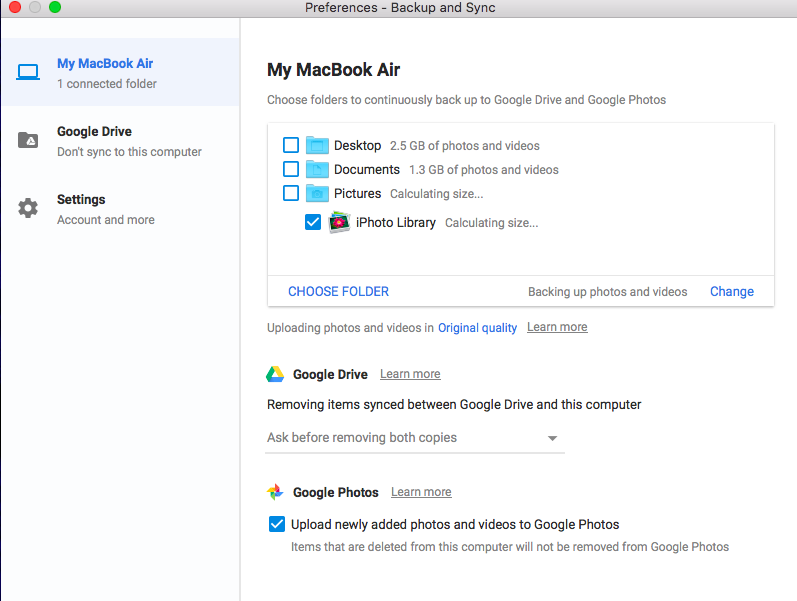 "Items that are deleted from this computer will not be removed from Google Photos"