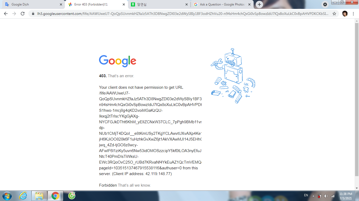 I can download the videos from my Google Photos but i can't download the photos. It's keep showing up like this: