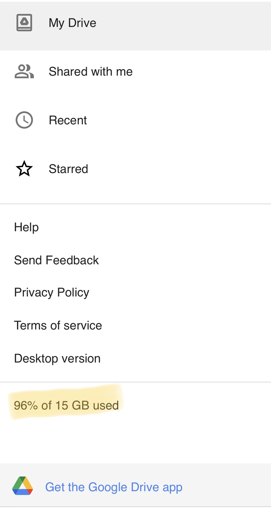 Storage was full due to photos. After deleting ALL photos and clearing the bin, my google drive stor…