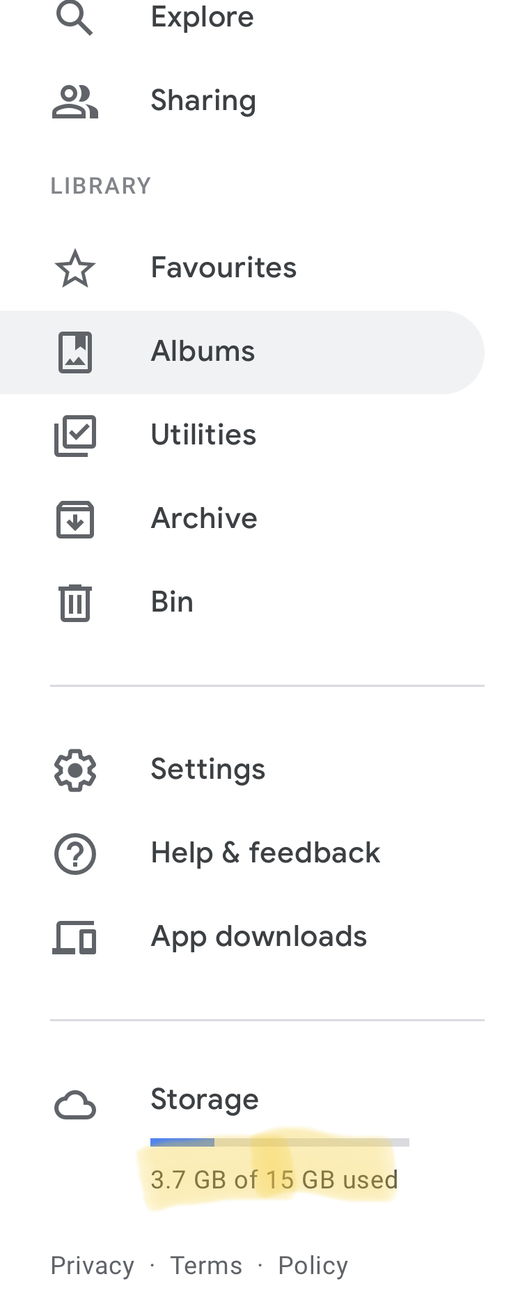 After deleting ALL photos and clearing the bin, my google drive storage is still full and claims it'