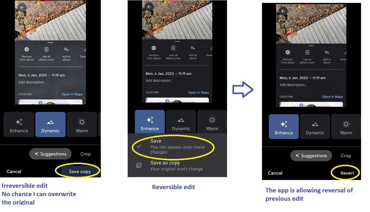- To save a copy of the photo with your edits, at the bottom right, tap Save.