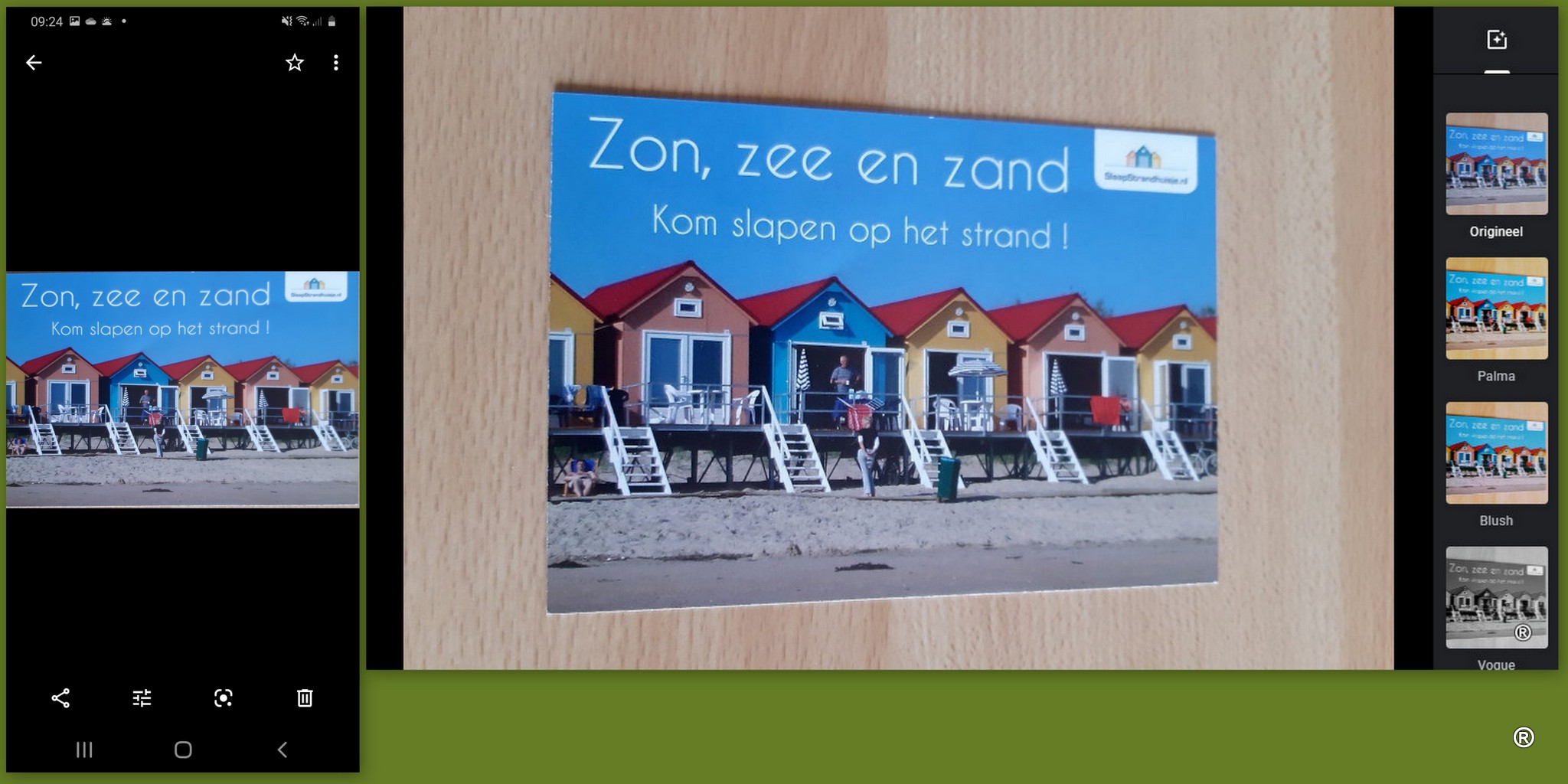 2. I use the camera app to auto-crop it, and I Save the update picture. Auto-cropping & de-skewing is nice,