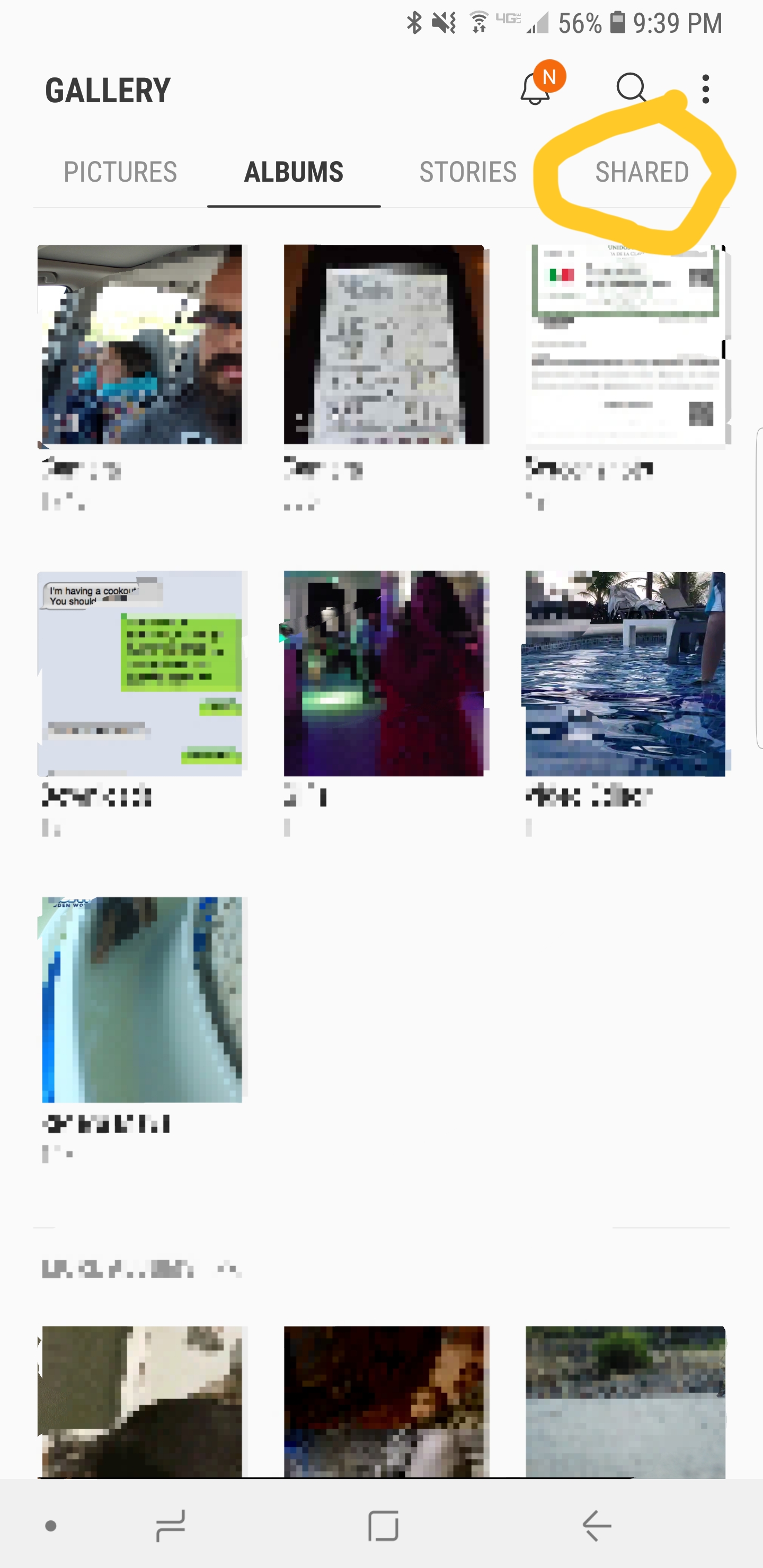 I have 2 phones, when you open the gallery app one of them has 4 option on top and the other one only 3. I want to activate the SHARED option in my other phone. If you can help me i will appreciate it. Thank you
