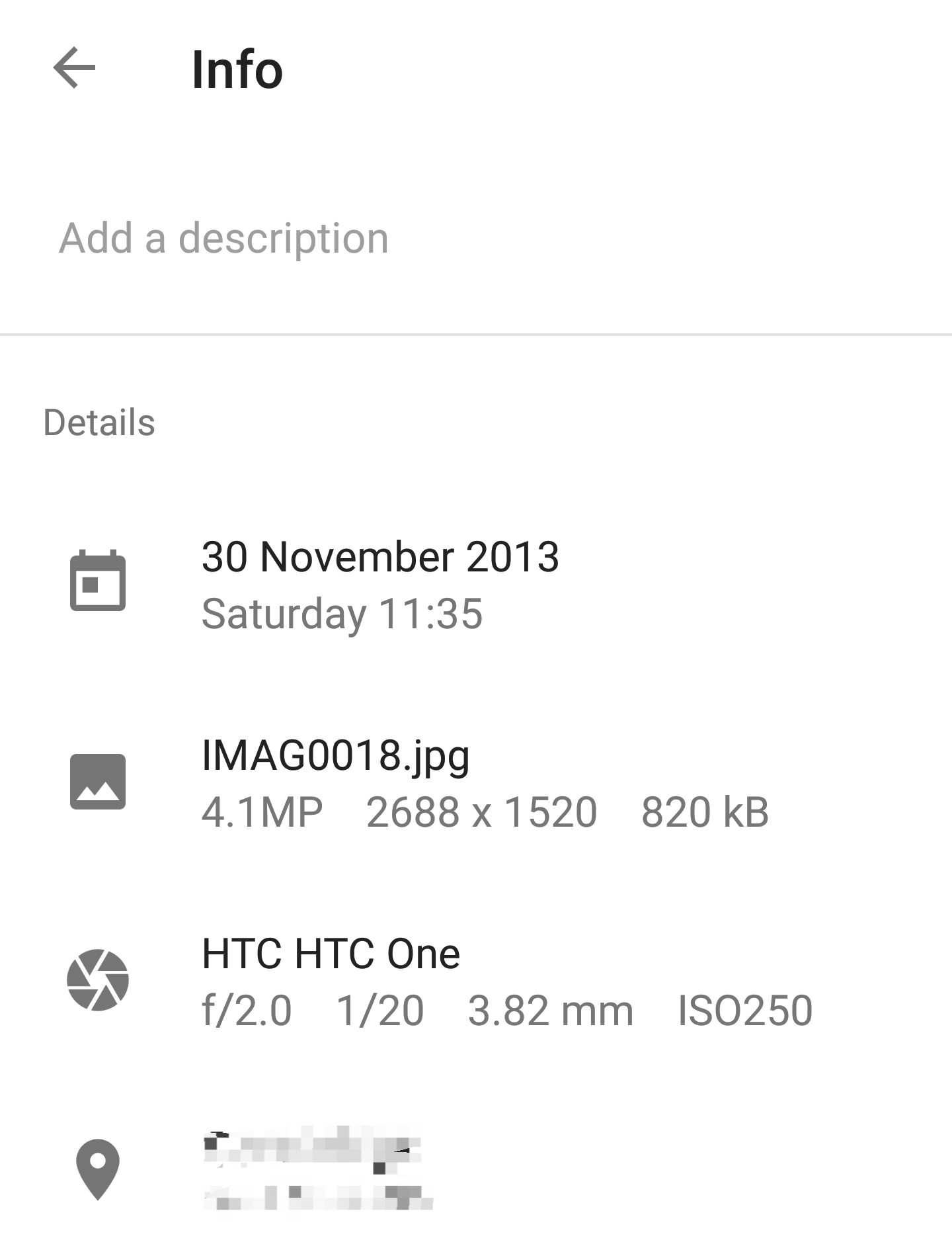 Only one location field on device shows the full path, and it's the external SD card. I don't know whether that has something to do with it. But do want to store my photos on external SD because I don't have enough internal storage.